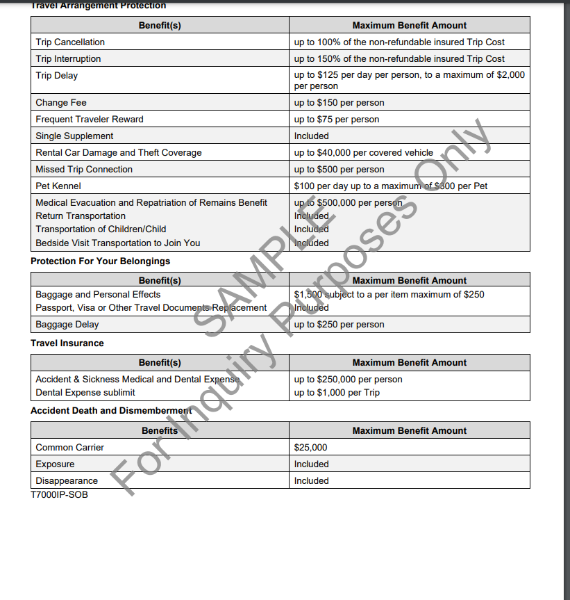 With iTravelInsured Travel SE you may recover non-refundable, unused payments and deposits when a trip is cancelled or interrupted due to a covered reason. Benefits are also provided for travel delays, baggage delays, and emergency medical treatment while you’re away from home.